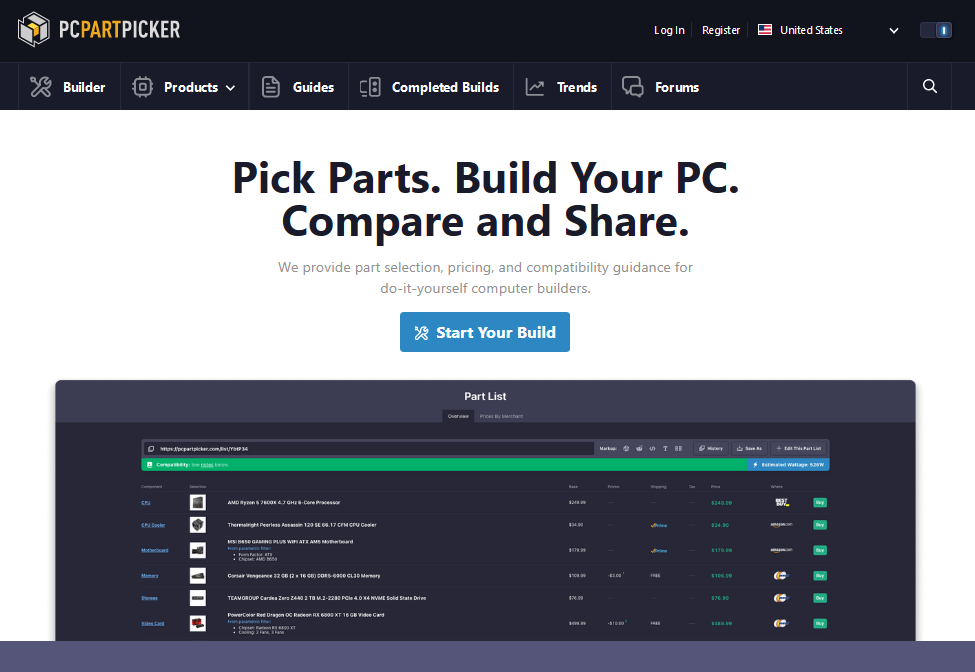 - Website URL: pcpartpicker.com