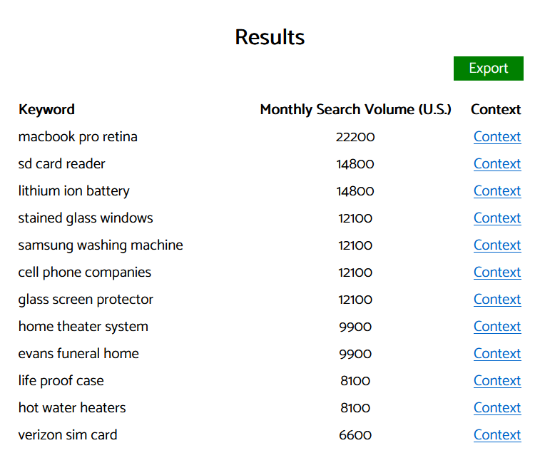 Instead of using Google autocomplete manually, Keyword Sheeter does it for you, fast.