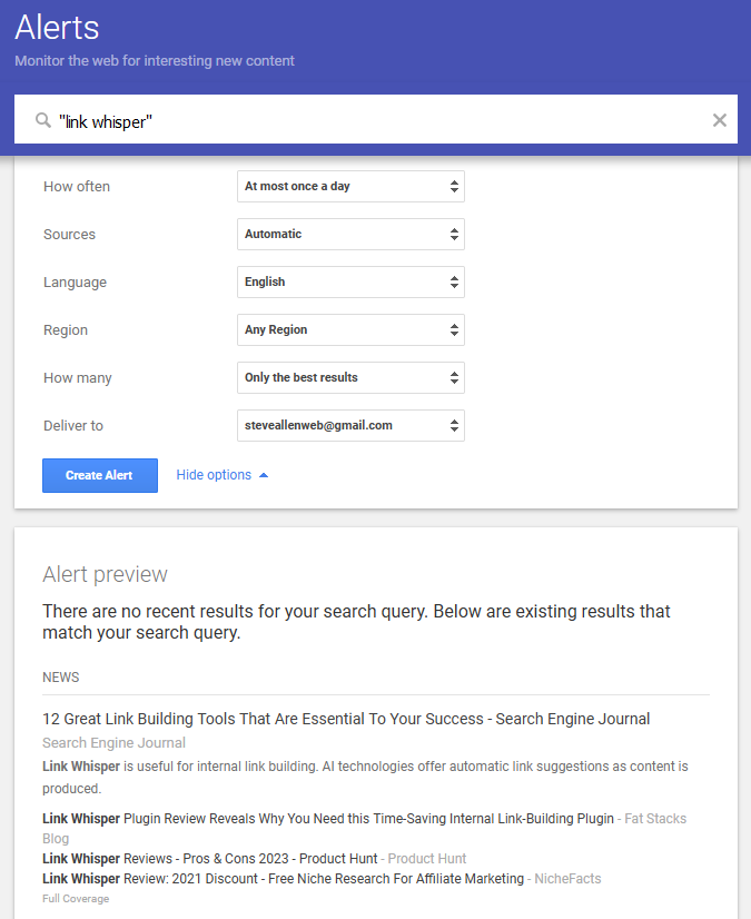 Google Alerts allows you to monitor the web for new content mentioning your brand, competitors, or relevant industry keywords.