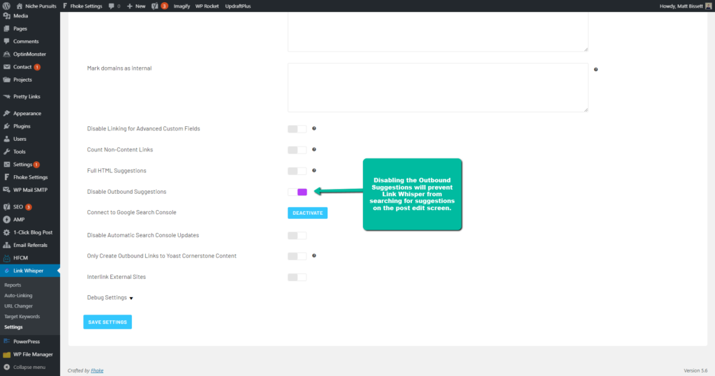 You can disable the Outbound Suggestions, (the suggestions in the post edit screen), from the Link Whisper Settings.